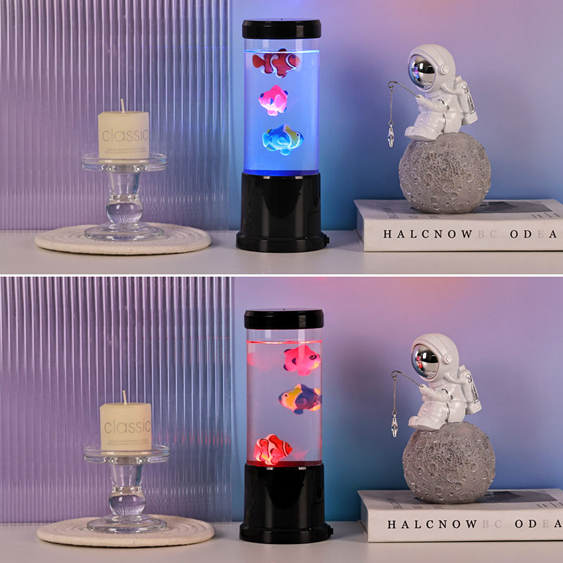 Viena ryškiausių šios medūzos lempos savybių yra jos spalvą keičianti LED sistema. Švelniai paspaudus mygtuką, lempa persijungia per įvairius raminančius atspalvius – nuo gilios vandenyno mėlynos ir raminančios žalios iki šiltos rožinės, violetinės ir baltos spalvos. Nesvarbu, ar jums labiau patinka rami naktinė šviesa
