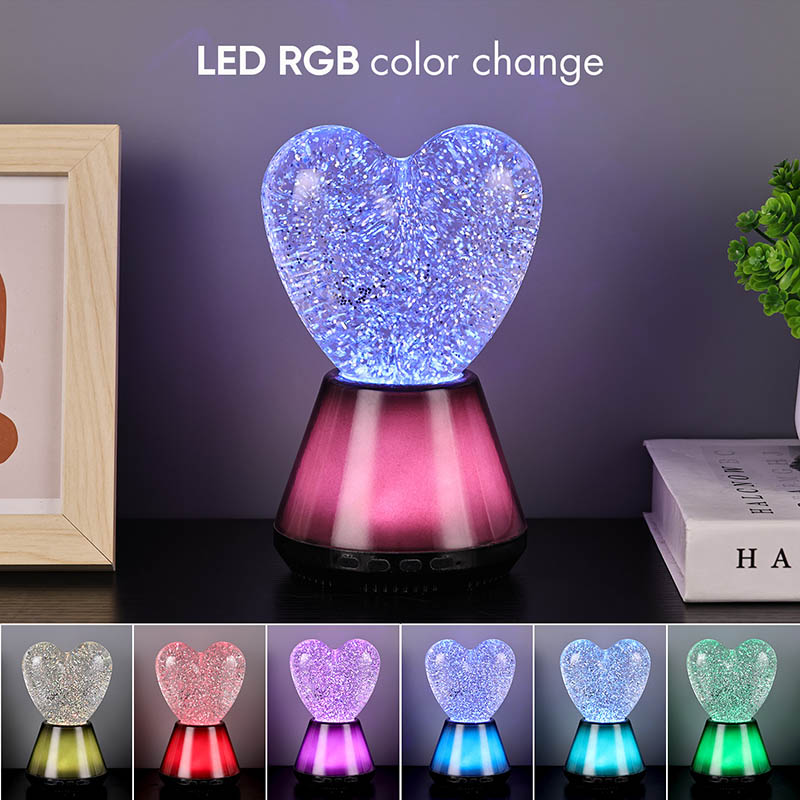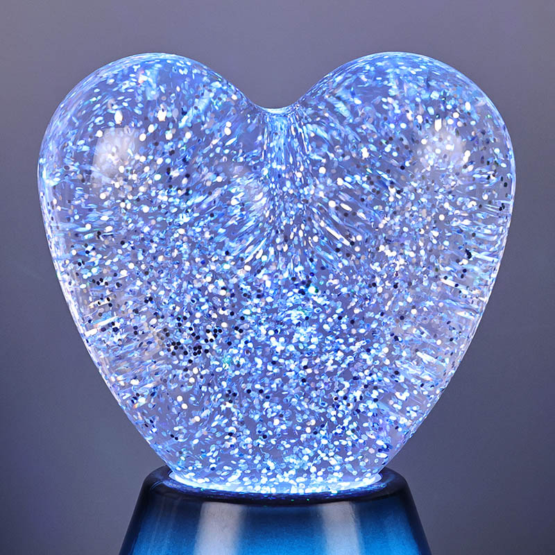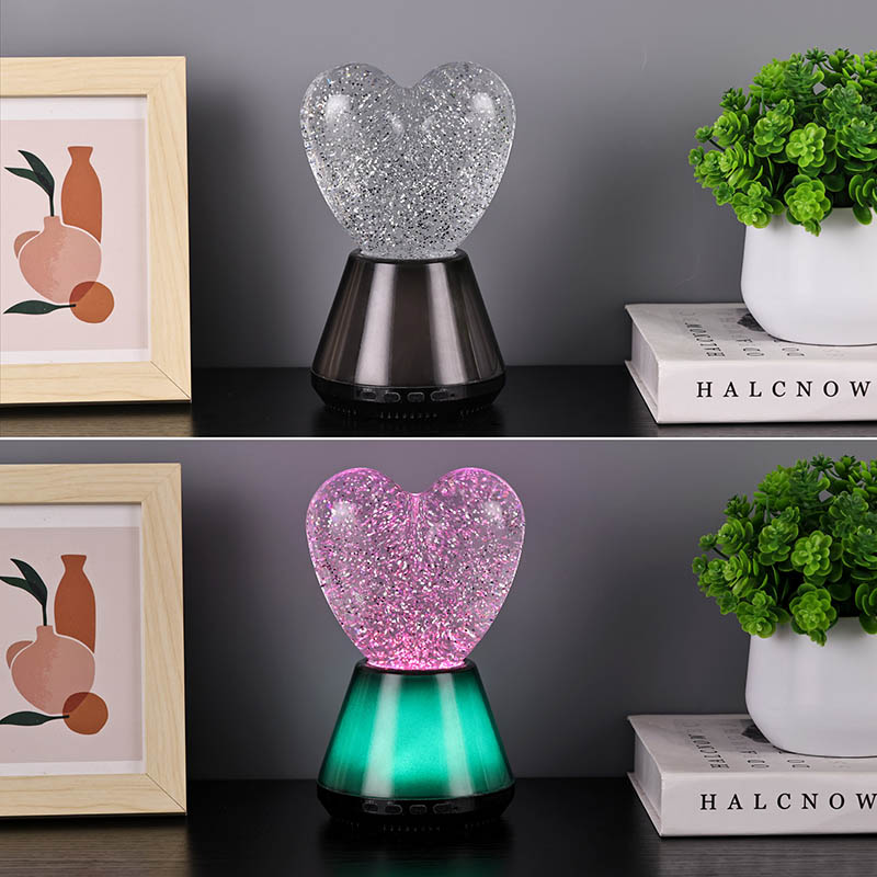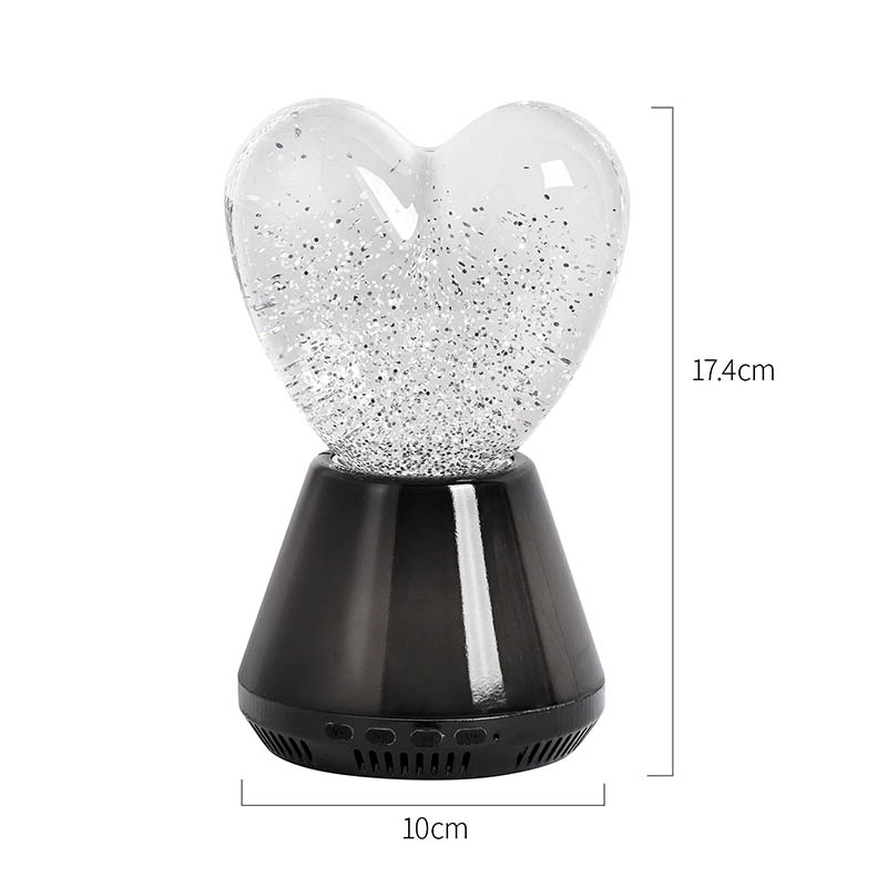 „Bluetooth“ valdymo LED blizgučių širdies nakties lemputės vidus užpildytas paslaptingu skysčiu, kuriame sklando begalė putojančių blizgučių. Įjungus lempą skystis lėtai tekės širdies formos stiklo rutulio viduje, sukurdamas svajingą efektą. Šie blizgučiai atrodo kaip išsibarsčiusios žvaigždės, švelniai plūduriuojančios skystyje, suteikdamos žmonėms jausmą, kad esate žvaigždėtame danguje. Nesvarbu, ar tai diena, ar naktis, su širdelės šešėliu jis gali sukelti staigmeną ir džiaugsmą vaikams, leisdamas jiems atskleisti savo vaizduotę svajingame apšvietime.