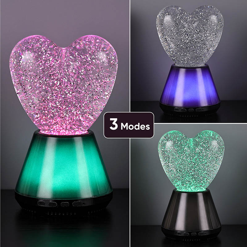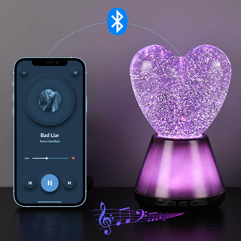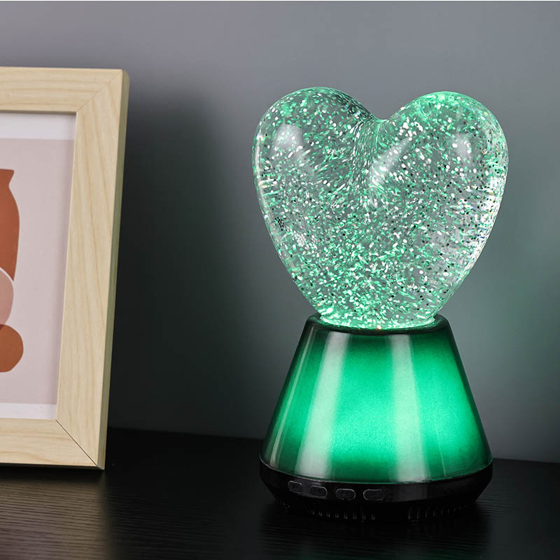 „Bluetooth“ valdomas LED blizgantis širdies naktinis šviestuvas, kuriame dera širdies formos dizainas, Bluetooth muzikos atkūrimas, saugi ir patikima plastikinė medžiaga, skystų blizgučių srautas ir spalvų transformacija, yra ypatinga dovana vaikams. Tai ne tik praktiška naktinė lemputė, bet ir stebuklingas meno kūrinys, leidžiantis vaikams viena po kitos mėgautis nuostabia naktimi šiltame apšvietime ir nuostabioje muzika.