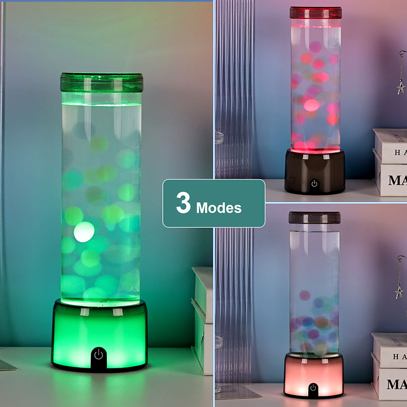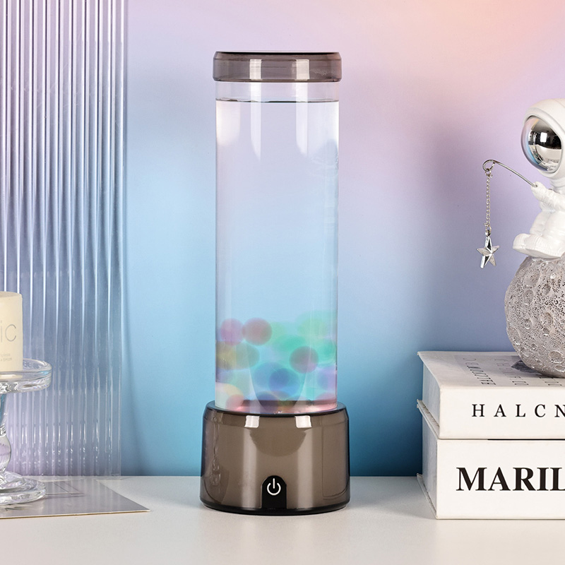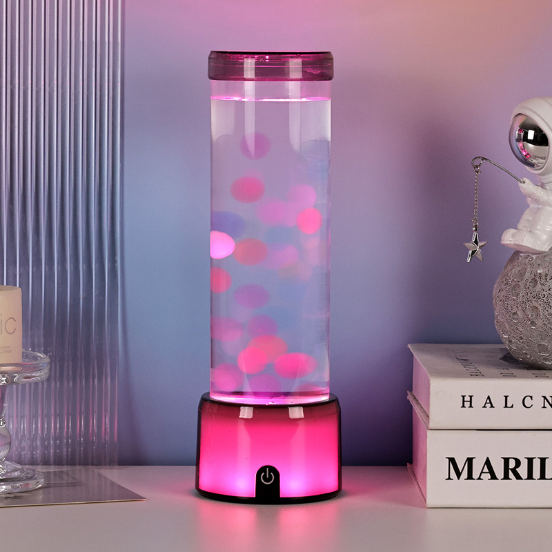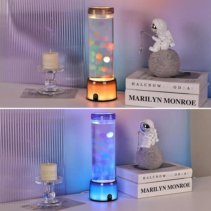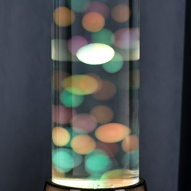 Aukšta, elegantiška lempos cilindro forma suteikia jai šiuolaikišką, minimalistinę išvaizdą, kuri dera prie įvairių interjero stilių. Permatomas korpusas leidžia visiškai matyti vidinius elementus, įskaitant plaukiojančias medūzas ir mirgančius šviesos atspindžius. Viduje esantis skystis yra specialiai sukurtas taip, kad imituotų vandens tekėjimą, padidindamas plūduriuojančio judesio tikroviškumą. Kai šviesos diodai keičia spalvas, atrodo, kad medūzos pulsuoja gyvybe ir suteikia scenai gylio ir judesio.