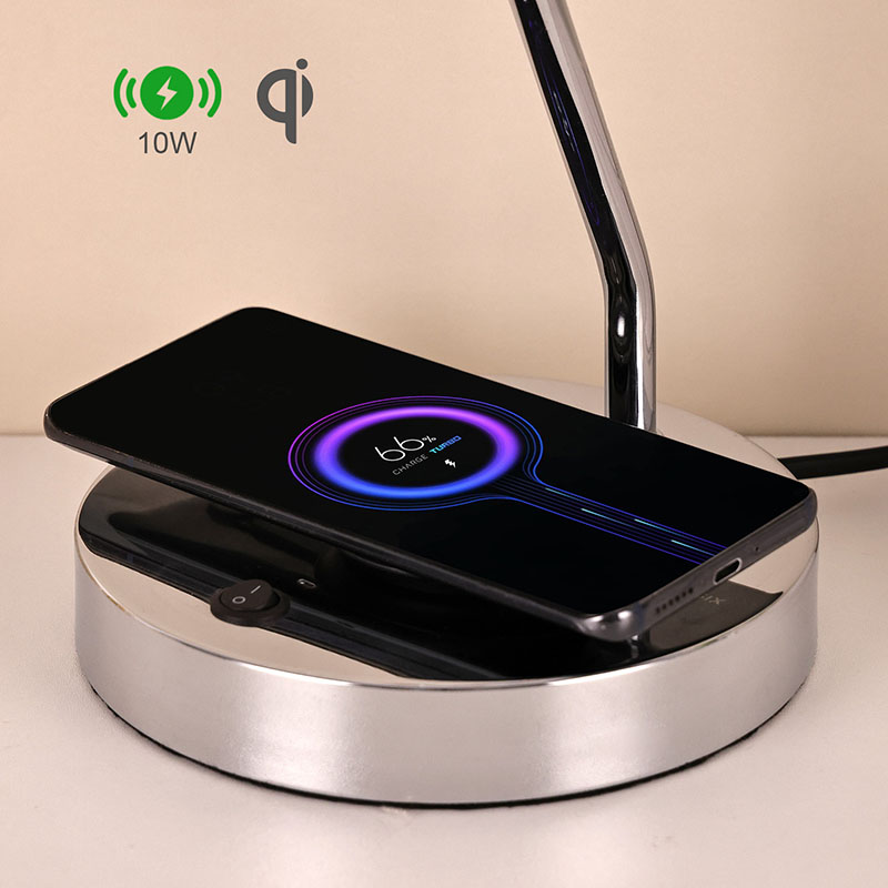 Stalinės lempos pagrinde yra belaidis įkroviklis