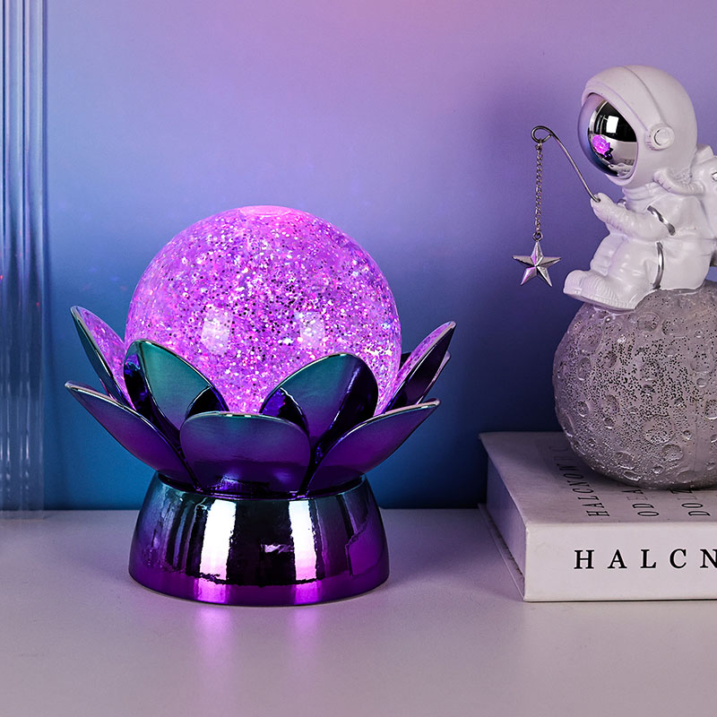 Elegantiškas „Lotus Crystal Ball“ naktinis šviestuvas – magiškas jūsų erdvės papildymas