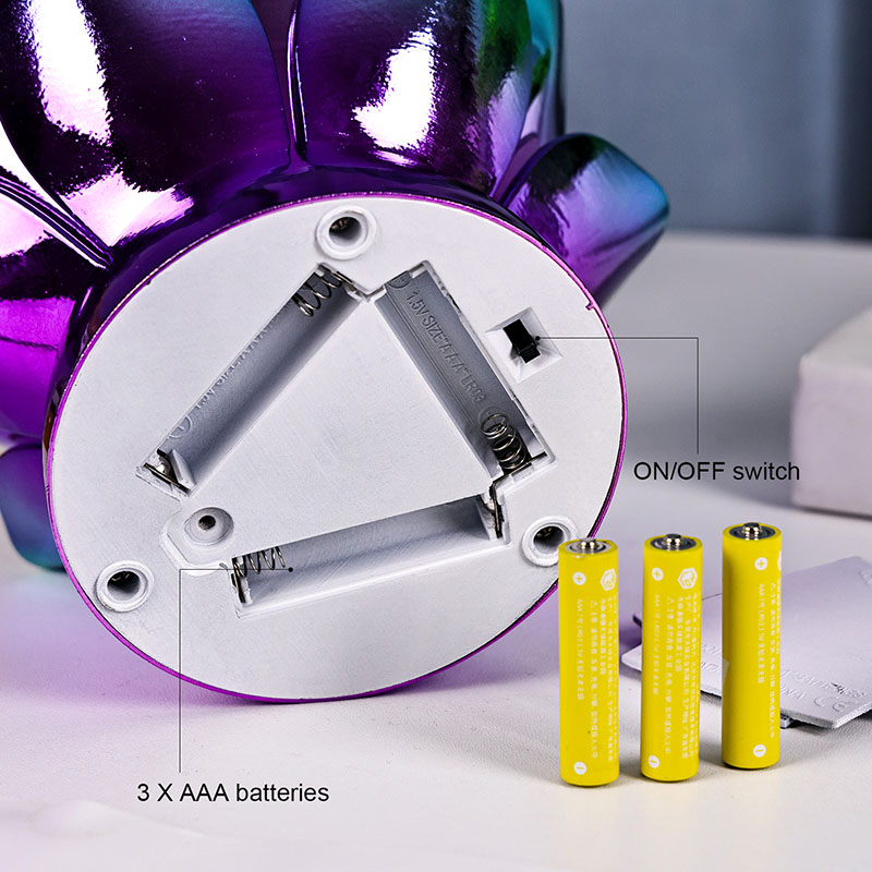 Naktinės lemputės pagrindas pagamintas iš aukštos kokybės plastiko su prabangiu purpuriniu dažymu