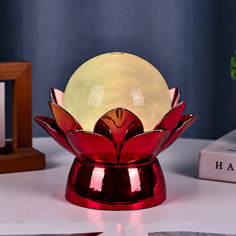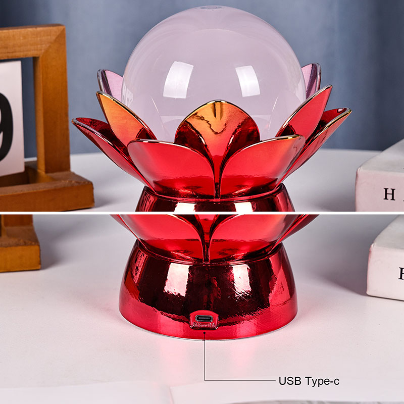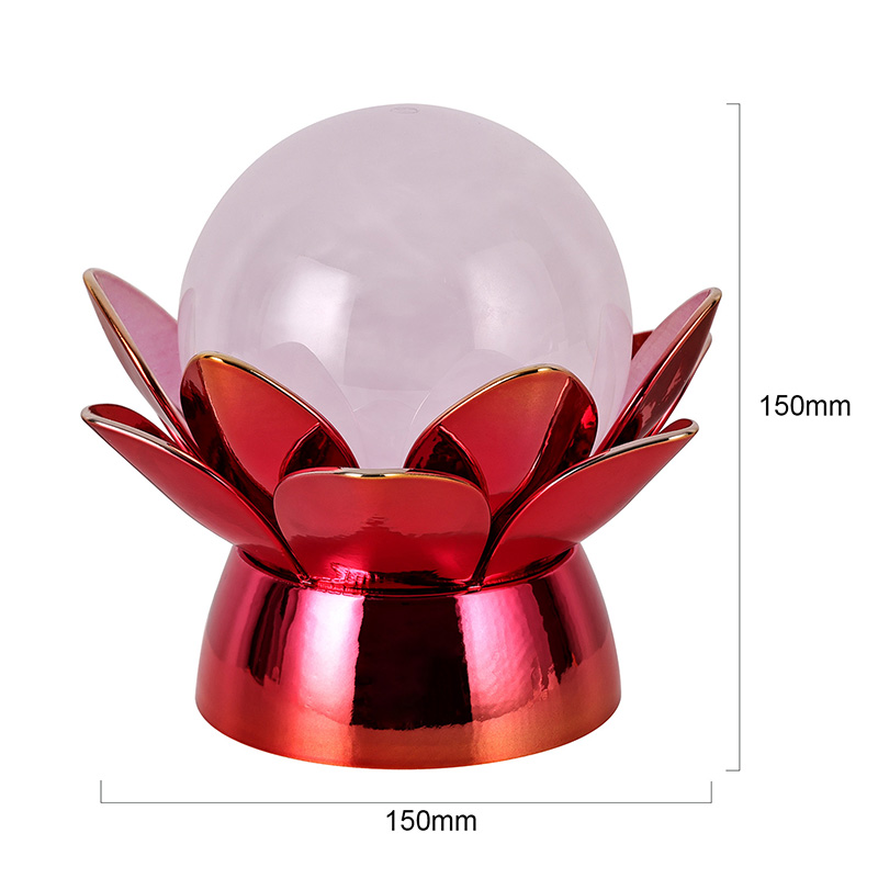 Pagamintas iš aukštos kokybės medžiagų, pagrindas pagamintas iš poliruoto metalo su ryškia raudonai auksine apdaila, kuri gražiai atspindi šviesą ir suteikia išvaizdai gylio ir sodrumo. Lotoso dizainas yra ne tik estetinis akcentas, bet ir simbolinė prasmė, įsišaknijusi Rytų tradicijose, atstovaujanti nušvitimą, atsparumą ir harmoniją. Atspindintis paviršius sustiprina vizualinį poveikį, todėl lempa šviečia net esant prastam apšvietimui.