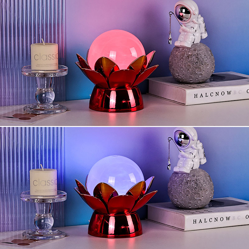 Žemės rutulio viduje pažangus LED apšvietimas siūlo kelių spalvų apšvietimą, leidžiantį vartotojams pritaikyti nuotaiką švelniais atspalviais, tokiais kaip šilta balta, švelniai rožinė, ramina mėlyna ir aukso geltona. Spalvų keitimo funkciją galima valdyti rankiniu būdu arba nustatyti, kad ji veiktų automatiškai, kad būtų užtikrintas dinamiškas ir patrauklus ekranas, kuris laikui bėgant vystosi. Šis aplinkos apšvietimas idealiai tinka miegamiesiems, svetainėms, jogos erdvėms arba kaip apgalvota dovana artimiesiems, vertinantiems grožį ir ramybę.