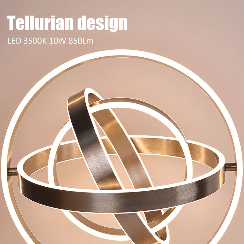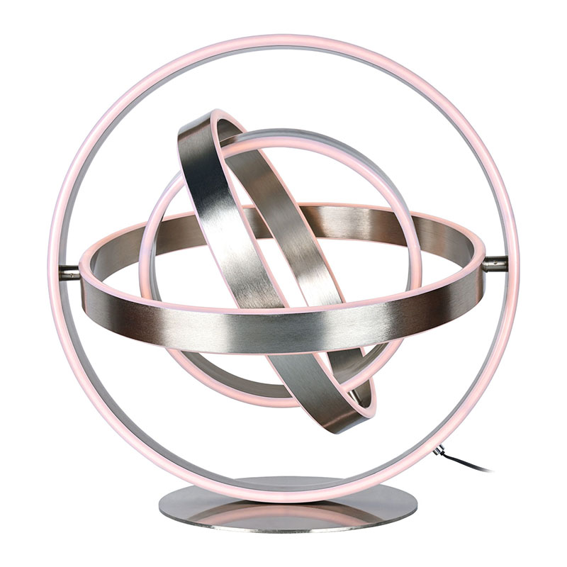 Tiksliai sukurta kelių žiedų LED dekoratyvinė stalinė lempa pasižymi aptakiu ir elegantišku dizainu, pagamintu iš patvarių lydinių. Lempa sudaryta iš kelių tarpusavyje susijungiančių žiedų, kurie sukuria vizualiai įspūdingą ir unikalią išvaizdą. Nesvarbu, ar pastatysite jį ant rašomojo stalo, naktinio staliuko ar bet kokio kito paviršiaus, šis šviestuvas tikrai sužavės ir džiugins.