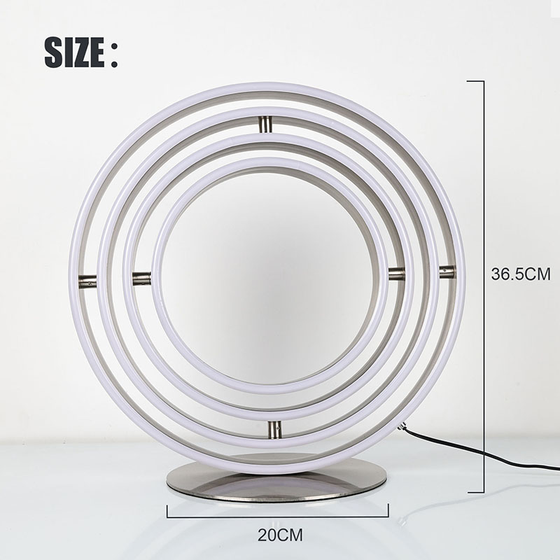 Kelių žiedų LED dekoratyvinė stalo lempa yra daugiau nei tik apšvietimo įrenginys; tai meno kūrinys, kuris pagerina jūsų gyvenamosios erdvės atmosferą. Ryškus, dinamiškas ekranas ir elegantiškas dizainas puikiai papildo bet kurį kambarį. Nesvarbu, ar norite sukurti jaukų skaitymo kampelį, ar savo gyvenamajai zonai suteikti šiuolaikiškos elegancijos, šis šviestuvas yra puikus pasirinkimas.