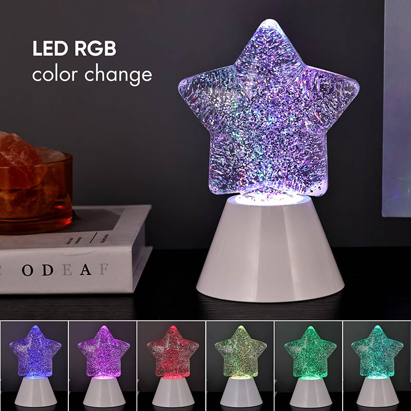 RGB keičiantis spalvų saugos plastikinė naktinė lemputė su blizgučiais