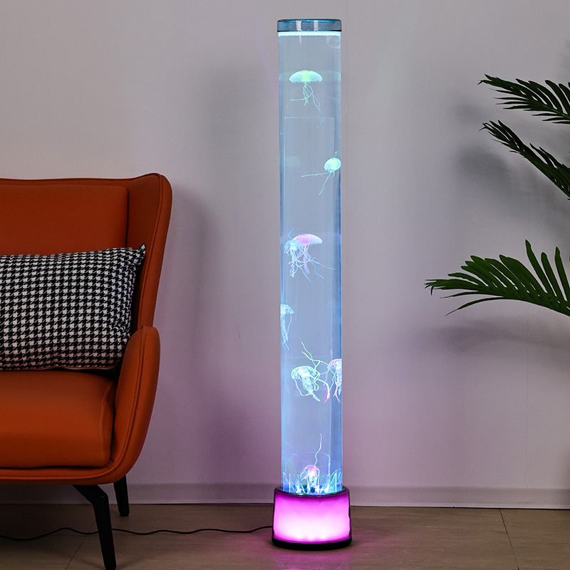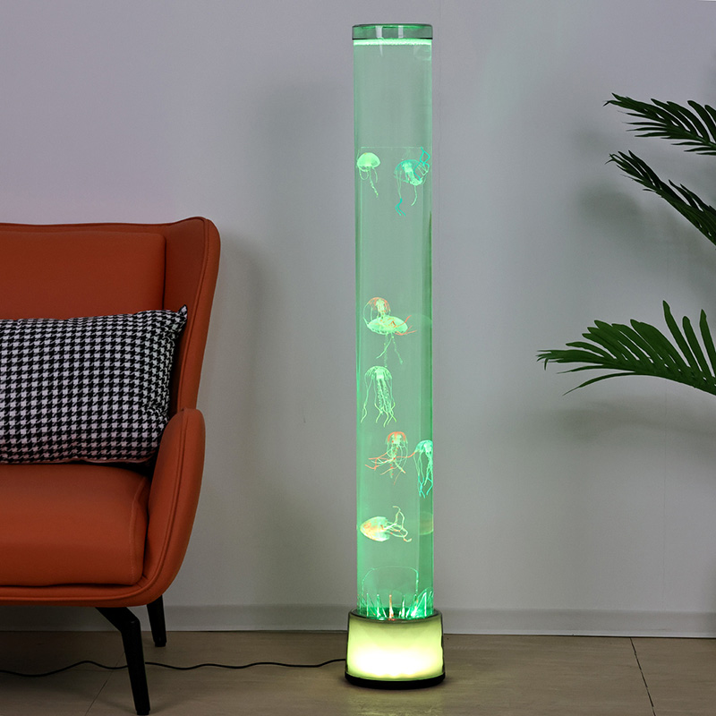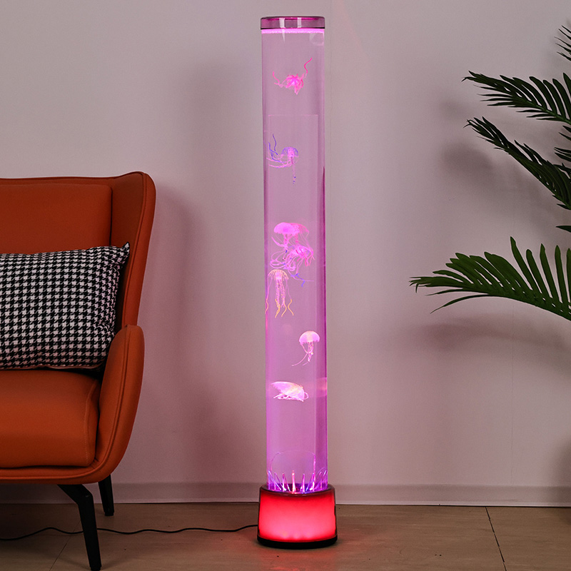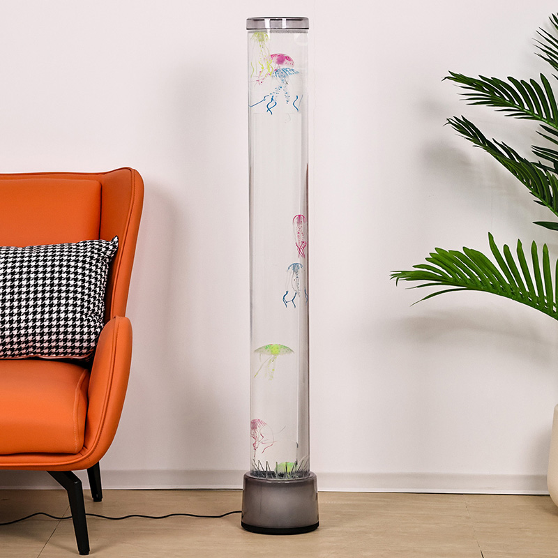 39,5*39,5*115cmDidelė RGB grindų medūza lempa yra kūrybiškas namų dekoro elementas, kuriame šiuolaikinės technologijos dera su natūralia estetika, pasižymi svajingais šviesos efektais ir tikrovišku medūzų dizainu.