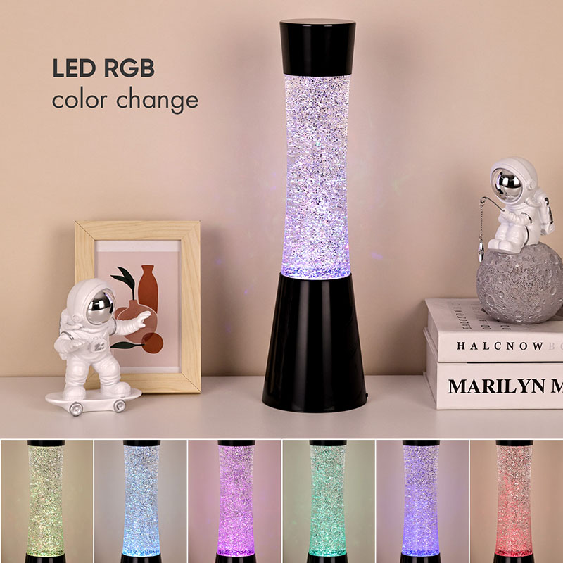 Kitas šios mažos naktinės lemputės akcentas yra skystas ir blizgantis dizainas viduje. Skystyje yra daug blizgučių, kurie ryškiai šviečia apšviečiant šviesą, tarsi naktiniame danguje mirksi begalė žvaigždžių. Skysčiui tekant, blizgučiai išsisklaidys netaisyklingai, sukurdami svajingą vizualinį efektą. Led blizganti lavos lempa su 3AAA baterija taip pat turi RGB spalvų apšvietimo funkciją. Naudodami pažangią LED technologiją, šviestuvai gali skleisti švelnią ir vienodą šviesą bei laisvai reguliuoti šviesos spalvą pagal skirtingas scenas ir poreikius. Galite pasirinkti savo mėgstamą spalvą arba nustatyti, kad šviestuvai automatiškai pakeistų spalvas, kad sukurtumėte spalvingą vaizdinę šventę.