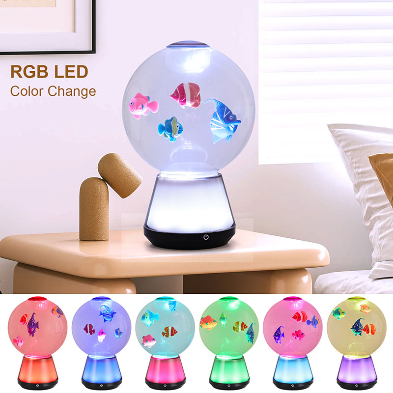 Tai, kas iš tikrųjų išskiria šią lempą, yra pusiau permatomas, keičiantis spalvas pagrindas. Pagaminta iš aukštos kokybės plastiko su matiniu paviršiumi, pagrinde yra galinga, tačiau energiją taupanti LED sistema, kuri kinta įvairiais ryškiais atspalviais, įskaitant vandenyno mėlyną, sodrią violetinę, koralų rožinę, vandens žalią ir švelnią baltą. Šviesa sklinda aukštyn per rezervuarą, skleisdama eterinį švytėjimą, kuris atsispindi nuo judančių figūrų ir skysčio, sukurdamas nuolat besikeičiančius šviesos ir šešėlių modelius. Pusiau permatomas dizainas leidžia spalvoms švelniai spinduliuoti į išorę, paverčiant visą lempą 360 laipsnių aplinkos šviesos šaltiniu, kuris pakeičia jūsų kambario atmosferą.