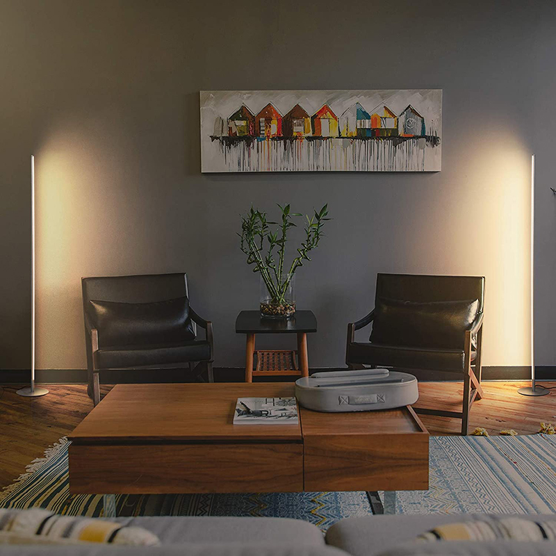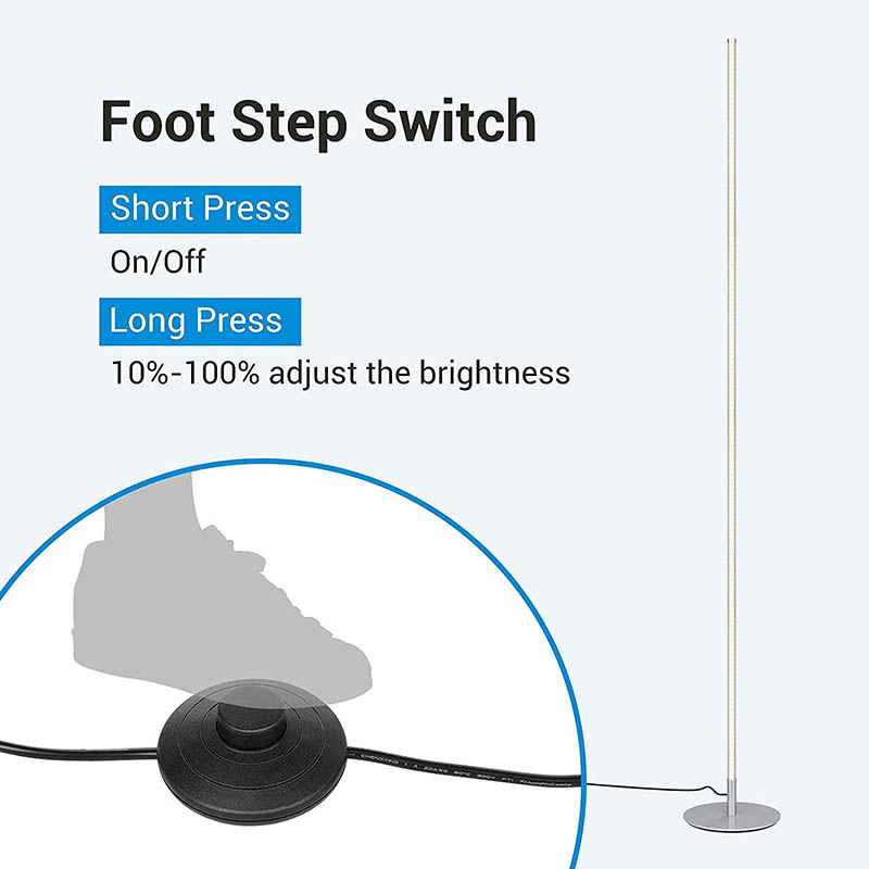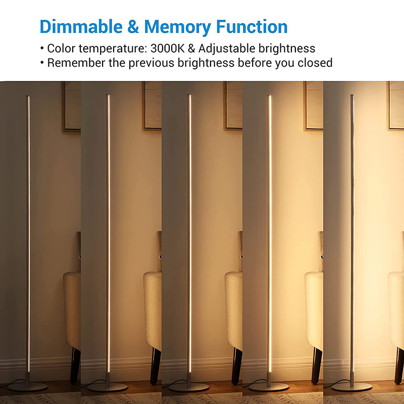 Mūsų prabangaus Simply LED grindų lempos su VIENU poliu matmenys. Lempa gali apšviesti patalpose šilta šviesa, taip pat gali būti atmosferos šviesa su RGB šviesa. jis pagamintas iš metalo ir plastiko.ilgas ir siauras šviestuvo grindų korpusas, prabangus metalas, skirtas papuošti jūsų lovą. Taip pat galite pakeisti spalvą naudodami RGB šviesą, kai mėgaujatės vakarėliu.