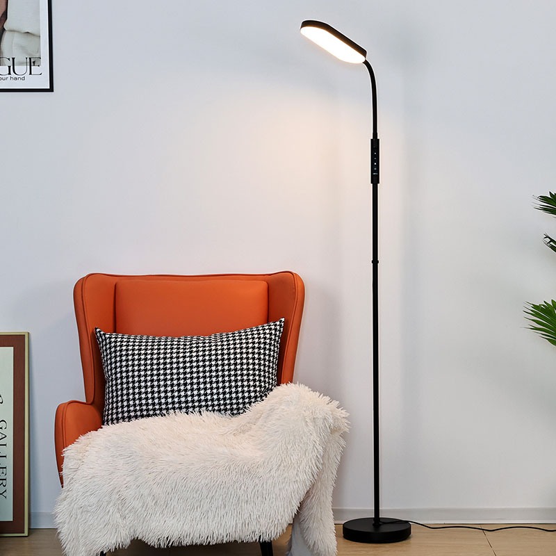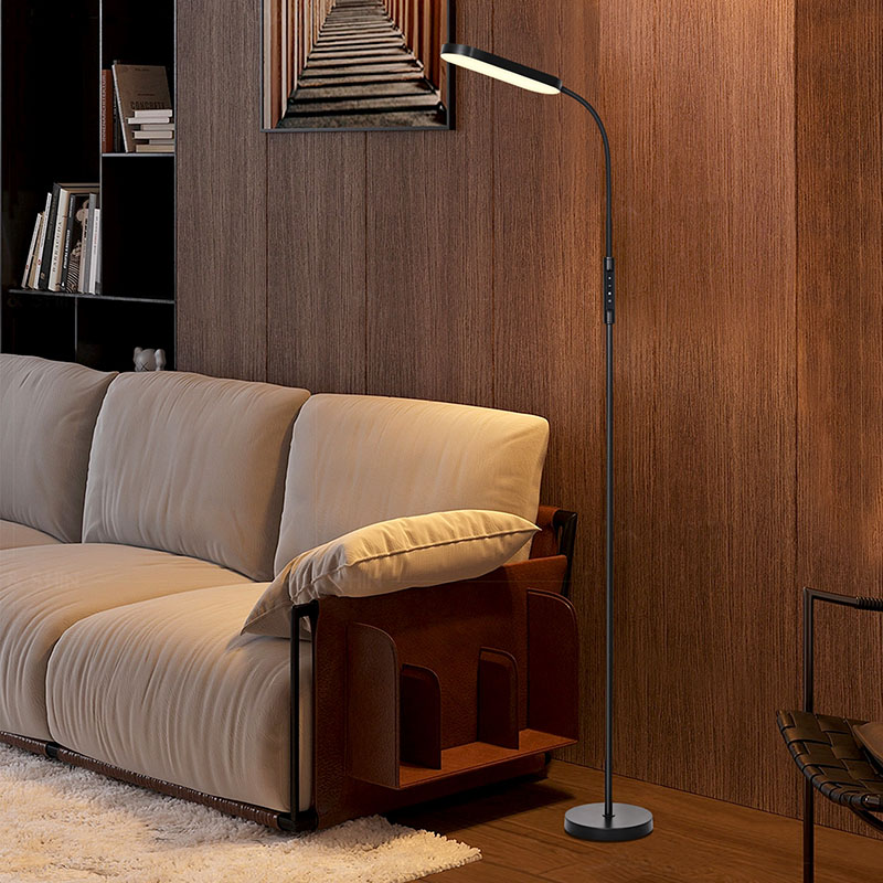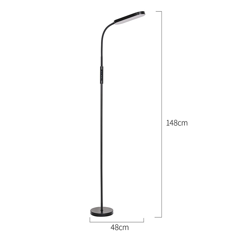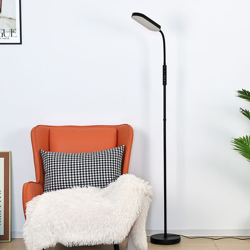 Modernus LED stovimas svetainės šviestuvas yra minimalistinio dizaino, paprastos ir linijinės bendros formos. Vieno poliaus dizainas ne tik taupo erdvę, bet ir suteikia šviestuvams unikalios estetikos. Juodo metalo strypas ir pagrindas buvo smulkiai poliruoti ir apdoroti, o paviršius yra lygus, švelnus, švelnus blizgesys ir švelni, tačiau kilni atmosfera.