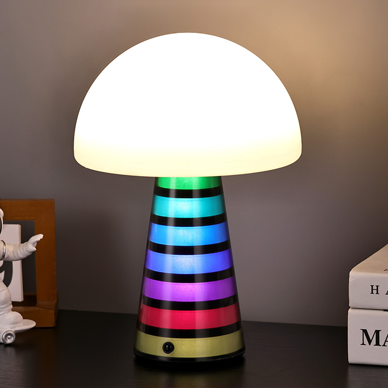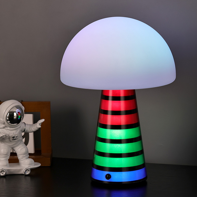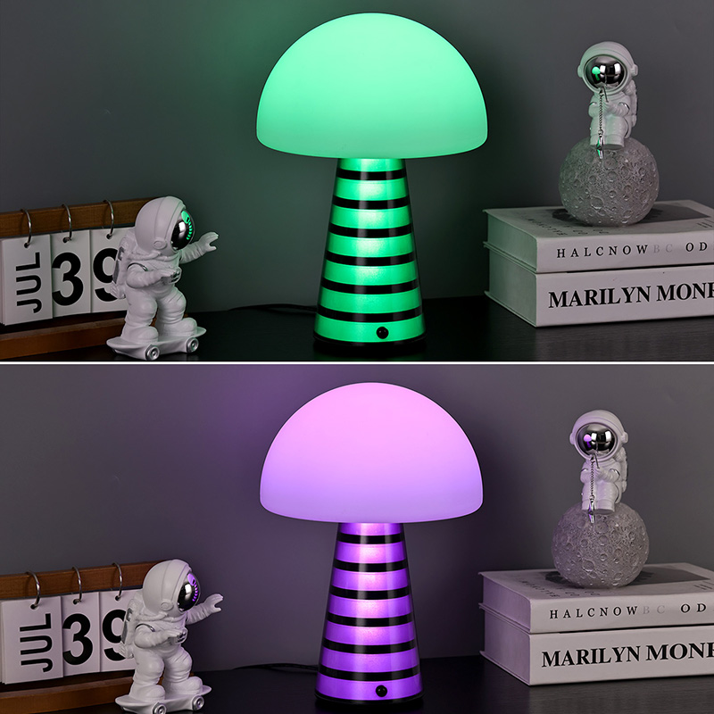 Digi RGB naktinė lemputėBendras stalinės lempos stilius yra mielas, o PVC medžiaga kartu su grybo formos dizainu yra labai populiari tarp vaikų. Šviestuvo galvutė ir lempos stulpas gali keisti spalvą, o spalvos keičiasi pakaitomis, todėl spalvos yra labai gražios. Be to, stalinė lempa yra su šiltų spalvų reguliuojamu šviesos intensyvumu, kurią galima naudoti kaip apšvietimo lempą. Vaikiško stiliaus miegamajame jis bus labai harmoningas