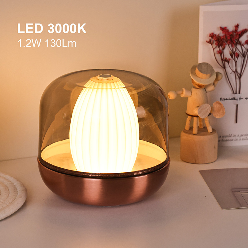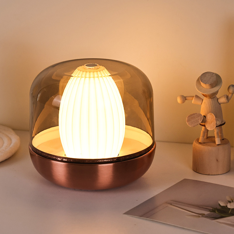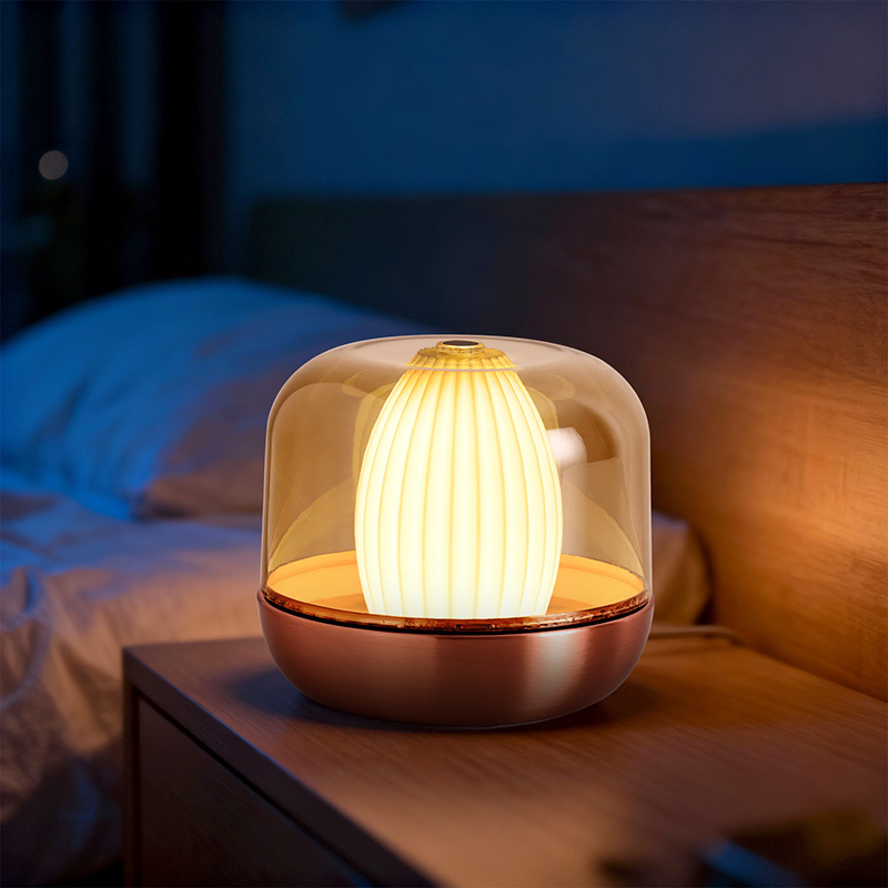 Šios šiltai šviečiančios naktinės lemputės dizaino įkvėpimas kyla iš gamtos ir architektūrinės estetikos sintezės. Savo apvalia ir putlia bendra forma jis primena kruopščiai išraižytą gintaro brangakmenį. Padėtas ant stalo ar stalo, jis lengvai tampa vizualiu židinio tašku. Išoriniame sluoksnyje yra labai skaidrus dangtelis, kuris ne tik apsaugo vidinį šviesos šaltinį, bet ir sukuria unikalius šviesos ir šešėlių sluoksnius dėl lūžimo ir sukuria svajingą vizualinį efektą.