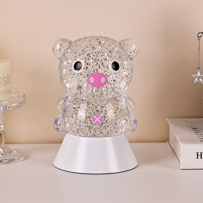 Plastikas ir elektronikaJaukią naktį įnoringas ir stebuklingas naktinis šviestuvas gali įnešti į vaiko kambarį begalę šilumos ir fantazijos. Šis „Dreamy Pig“ formos dekoratyvinis naktinis šviestuvas, įkvėptas žavingo animacinio kiaulės dizaino, sujungia dinamišką skysčių keitimo technologiją su putojančiais efektais, kad sukurtų kūrybišką namų apšvietimo gaminį, kuriame susilieja linksmybės, estetika ir praktiškumas. Tai idealus pasirinkimas vaikų kambariams, miegamiesiems, rašomiesiems stalams ar kaip šventinė dovana.