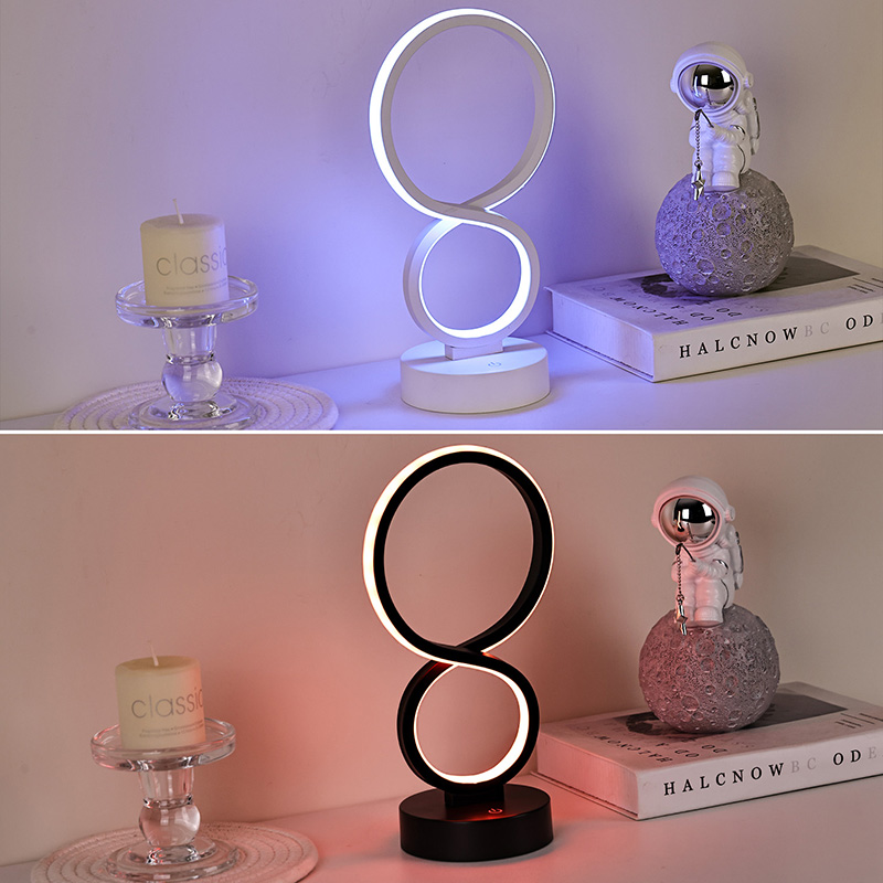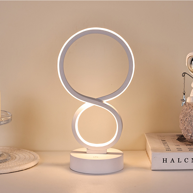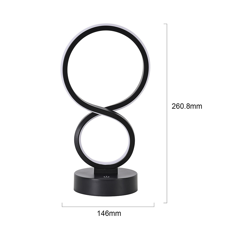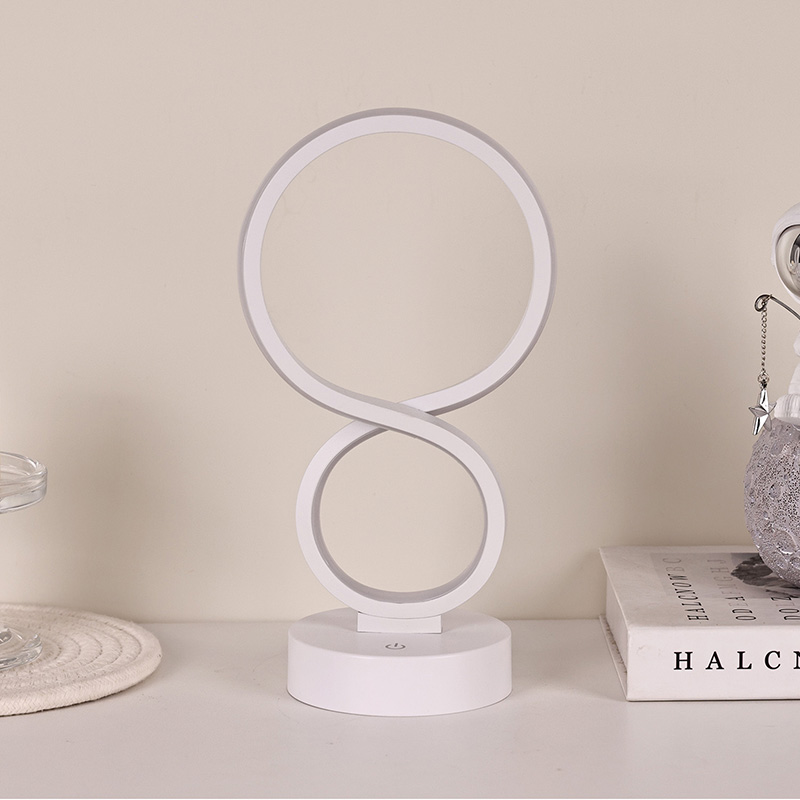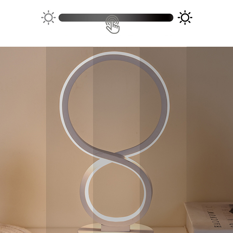 Įkvėptos begalybės simbolio, simbolizuojančio amžinybės ir apyvartos grožį, lygios linijos nubrėžia elegantišką 8 formų siluetą. Metalo ir aukštos kokybės plastiko derinys sukuria subtilią tekstūrą su šiltais čiuptuvais. Nepriklausomai nuo to, ar jis yra miegamajame, prie lovos, stalo kampe ar svetainės kampe, tai įspūdingas kraštovaizdis, suteikiantis namams modernios meninės atmosferos.