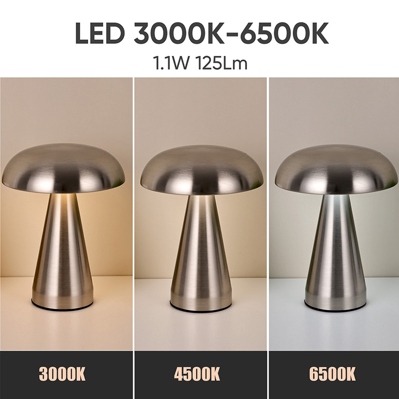Viso metalo LED stalinė lempa su grybų atspalviu turi 3000K (šilta šviesa) 4500K (natūrali šviesa) 6500K (balta šviesa) 3 šviesos spalvos pasikeitimas